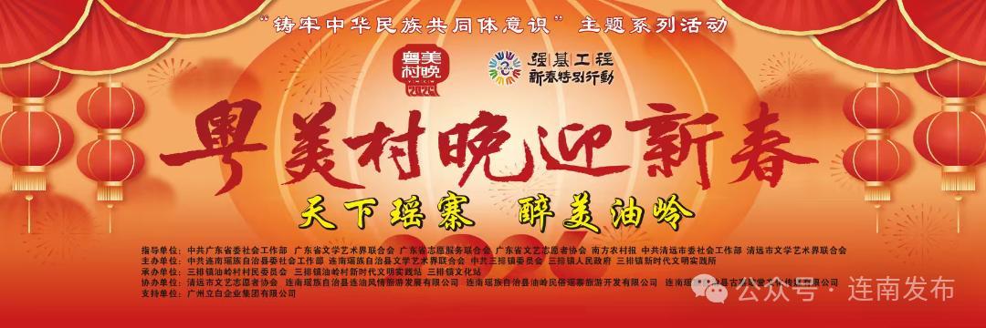 此次晚会由中共广东省委社会工作部、中共清远市委社会工作部、中共连南瑶族自治县委社会工作部指导,广东省文学艺术联合会、广东省志愿服务联合会、清远市文学艺术联合会、清远市志愿服务联合会、连南瑶族自治县文学艺术联合会主办,三排镇人民政府、三排镇新时代文明实践所承办,三排镇油岭村村民委员会、三排镇油岭村新时代文明实践站协办,通过以“政府搭台、群众唱戏”模式,将“百千万工程”宣传、乡村振兴成果展示与民俗文化传承深度融合。
